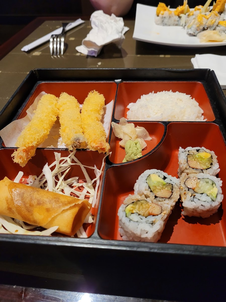 There is the restaurant side where you can dine in at tables and sit at hibachi (dinner only except for some holidays). And then there is the express side, which has a separate entrance (think food court type without it being in the actual food court). *express side is cheaper but dine in has wayyyyyy more options* They have lunch specials until 4PM if you like smaller portions. I can never eat a lot so this is perfect. The food is always fresh and delicious, and comes out hot. Sushi is always almost too pretty to eat. The manager is attentive and nice. Servers treat you like family and are always excited to see you.